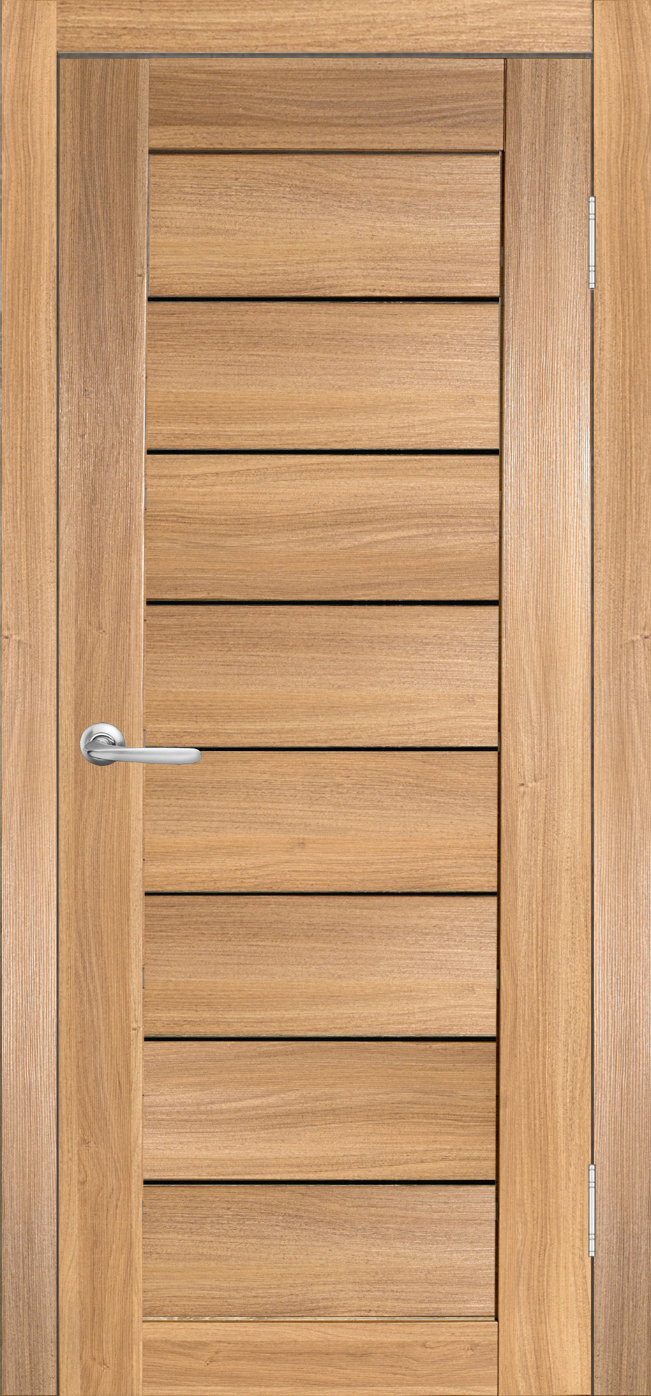 Дверь покрыта высокотехнологичным немецким полипропиленовым экошпоном, который обладает повышенной плотностью и эффективно имитирует структуру и фактуру натурального дерева. В производстве модели применена "бескромочная" технология производства дверных полотен, исключающая швы и стыки на углах двери.