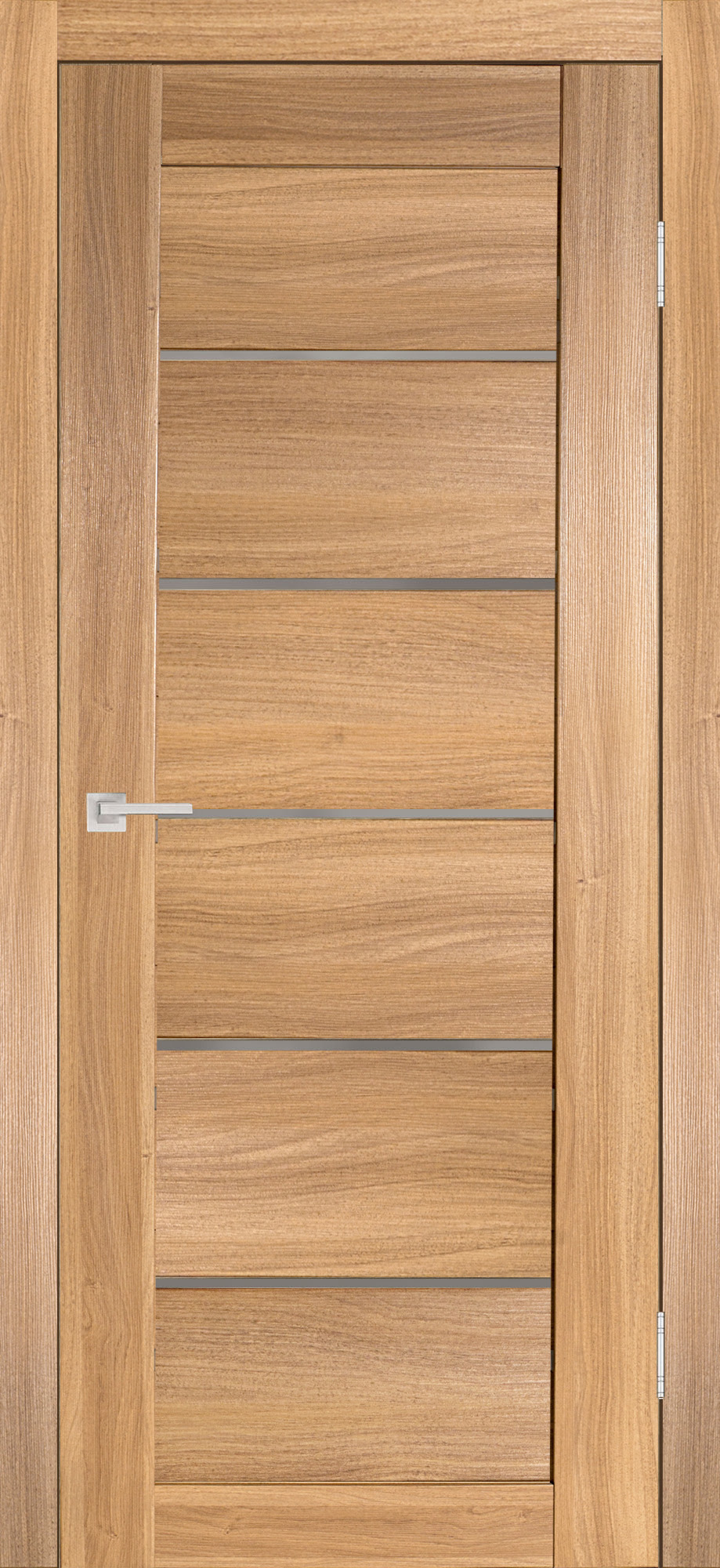 Дверь покрыта высокотехнологичным полипропиленовым экошпоном, который обладает повышенной плотностью и эффективно имитирует структуру и фактуру натуральных материалов. В производстве модели применена «бескромочная» технология производства дверных полотен, исключающая швы и стыки на углах двери.